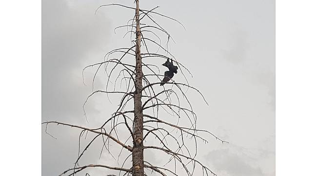 Ağaçta asılı kalan kargayı itfaiye kurtardı