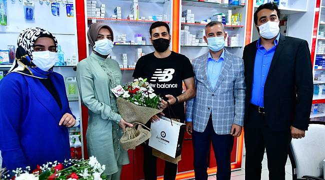 14 Mayıs Eczacılar Günü nedeniyle Yeşilyurt’ta hizmet verenNöbetçi Eczaneleri ziyaret eden Yeşilyurt Belediye Başkanı Mehmet Çınar, “Koronavirüs salgını ve deprem gibi insan hayatını tehdit eden olaylarda büyükbir fedakârlık ve özveriyle çalışarak isimlerini tarihimize altın harflerleyazdıran kahraman sağlık ordumuzun her biri neferiyle gurur duruyoruz.” diyekonuştu.