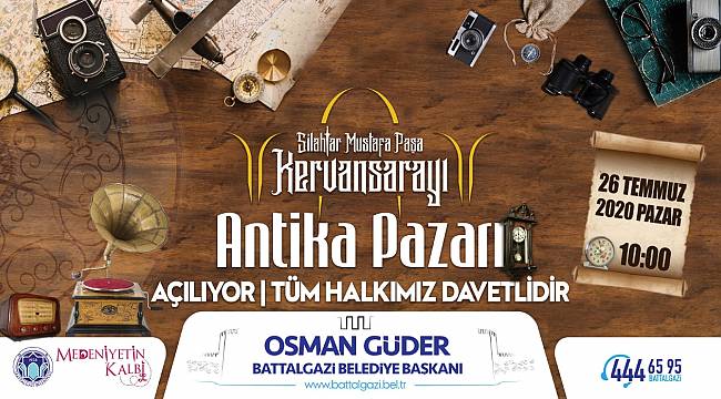 Battalgazi Belediyesi, Yurt içi ve yurt dışı Koleksiyoncularve Antikacıların yıllanmış ürünlerinin sergileneceği Antika Pazarı, 26 TemmuzPazar günü tarihi Silahtar Mustafa Paşa Kervansaray’ın da antika severlerekapılarını açıyor.