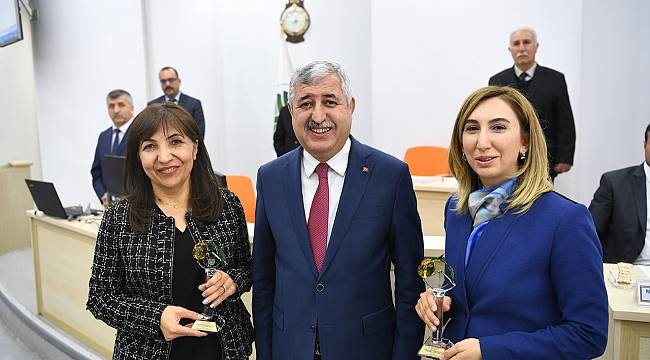 Yapılan konuşmaların ardından yapmış oldukları hizmetler anısına Büyükşehir Belediye Başkanı Hacı Uğur Polat Meclis Üyelerine Kayısı Kristali ile gömlek hediye etti.
