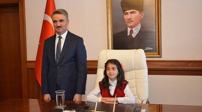 Vali Aydın Baruş, 23 Nisan Ulusal Egemenlik ve Çocuk Bayramı nedeniyle koltuğunu Yeşilyurt İlçesi Sadiye Ünsalan İlkokulu 4’inci sınıf öğrencisi Nida Uvat’a teslim etti.